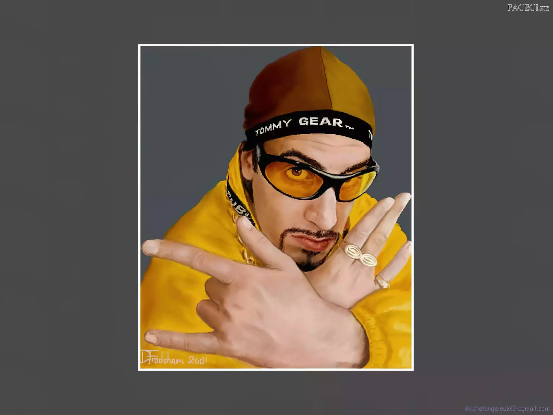 Sasha Baron Cohen, gruby łańcuch Sasha Baron Cohen, niebieski dres złoty strój, Sasha Baron Cohen, okulary Sasha Baron Cohen, ali g Sasha Baron Cohen, borat Sasha Baron Cohen, zdjęcia Sasha Baron Cohen, żółty strój